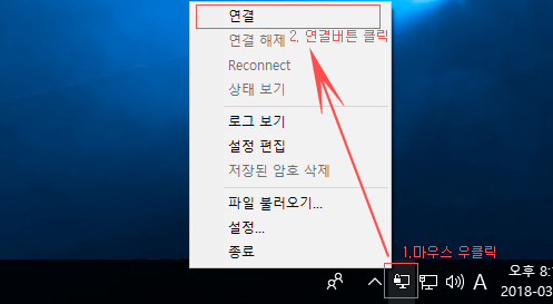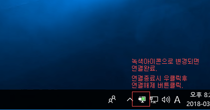 8. ¿¬°áÀÌ ¿Ï·áµÇ¸é À©µµ¿ìÀÛ¾÷Ç¥½ÃÁÙ ½Ã°è¿· ¾ÆÀÌÄÜÀÌ ³ì»öÀ¸·Î º¯°æµË´Ï´Ù.