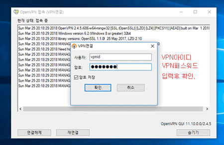 7. ½ÇÇàÈÄ ¿¬°áâ¿¡ VPN¾ÆÀ̵ð¿Í VPNÆÐ½º¿öµå¸¦ ÀÔ·ÂÈÄ È®ÀιöưÀ» ´·¯ ¿¬°áÇÕ´Ï´Ù.