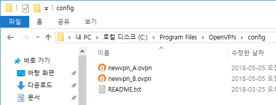 3. ¼³Ä¡°¡ ¿Ï·áµÇ¸é newvpn ¼³Á¤ÆÄÀÏÀ» ´Ù¿î·ÎµåÇÏ¿© PC¿¡ ÀúÀåÇÕ´Ï´Ù. (´Ù¿î·Îµå°¡ ¾ÈµÇ°í ÆÄÀÏÀÌ ¿¸± °æ¿ì Àüüº¹»ç ÇÏ¿© ¸Þ¸ðÀå¿¡ ºÙ¿©³Ö±â ÇÑ ÈÄ nurivpn1.ovpn ÆÄÀÏ·Î ÀúÀåÇÕ´Ï´Ù. ÇØ´çÆú´õ¿¡ ÀúÀå½Ã °ü¸®ÀÚ±ÇÇÑÀÌ ÇÊ¿äÇÏ´Ù°í Çϸé, ¸Þ¸ðÀåÀ» ¿À¸¥Âʸ¶¿ì½º ´·¯ °ü¸®ÀÚ±ÇÇÑÀ¸·Î ½ÇÇàÈÄ ÀúÀåÇÏ½Ã¸é µË´Ï´Ù.)
